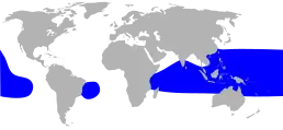 Птах поширений у тропічних та субтропічних широтах Індійського і Тихого океану, та на півдні Атлантичного океану.