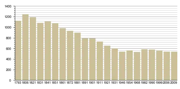 Динаміка населення (base Cassini de l'EHESS pour les nombres retenus jusque 1962[3], base Insee à partir de 1968 (population sans doubles comptes puis population municipale à partir de 2006)[4] · [5] ):