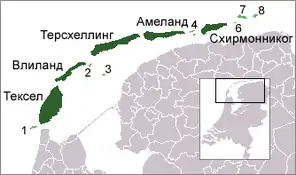 | Фризькі острови фриз. Waadeilannen, нід. Waddeneilanden, нім. Friesischen Inseln, дан. Vadehavsøer | ||||