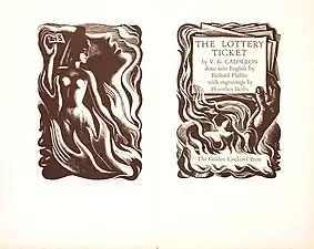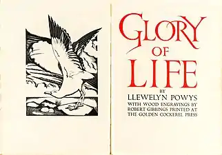 Роберт Ґіббінґс. Фронтиспіс та титульний аркуш до повісті Ллевеліна Повіса «Слава життя», 1934