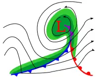 Фронт оклюзії — атмосферний фронт, що формується в процесі циклоногенезу позатропічного циклону, коли холодний фронт наганяє теплий; процес його формування відомий як оклюзія циклону. Коли це трапляється, тепле повітря відділяється від центру циклону біля поверхні Землі. Точка у просторі, у якій зходяться теплий та холодний фронти, має назву потрійної точки[1].