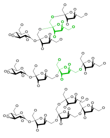 Більш складні фруктани утворюються з кестотріозной ланцюга, в якій подовження відбувається з двох сторін. Як і в попередньому випадку, тут виділяють два типи фруктанів: