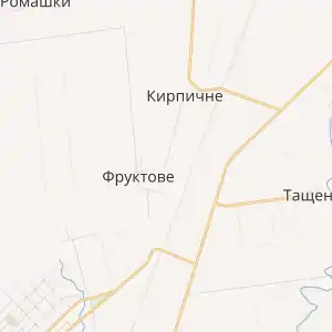 Селище Фруктове примикає до села Кирпичне, навколо села кілька садових масивів. Селищем протікає річка Балка Добра. Поруч проходять автомобільна дорога М18 (E105) і залізниця, станція Якимівка за 7 км.