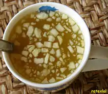 Суп можна подавати гарячим або холодним. Приготований заздалегідь охолоджений суп можна розігрівати. Смак страви стає кращим, якщо дати їй настоятися протягом декількох годин перед подачею. За цей час аромати входять до нього продуктів краще з'єднуються один з одним.