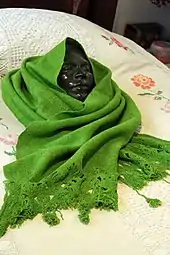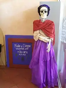 Під час Громадянської війни в Морелосі відбувалися одні з найзапекліших зіткнень, а життя в іспанському стилі містечка Куернавака загострило у Фріди Кало чуття мексиканської ідентичності та розуміння історії[177]. Щоб підкреслити своє «метиське» коріння, Фріда, як і багато хто з тогочасних вітчизняних художниць та інтелектуалок[178], почала носити традиційні аборигенські селянські сукні «віпіл» і «ребозо» — довгі та строкаті, укладати вигадливі зачіски й носити багато прикрас[179]. Особливо їй подобався вид «самобутньої тубільної культурної спадщини» — сукні, які в постреволюційній Мексиці носили жительки перешийка Теуантепек, що належали до матріархальної спільноти[180]. Теуантепецьке вбрання дало змогу Кало виразити свої феміністичні та антиколоніальні погляди[181], приховати вади тіла та завоювати прихильність Дієго. На його думку, «мексиканки, що не бажають носити [мексиканське вбрання], ментально й емоційно залежні від класу колонізаторів, до якого хотіли б належати».[182][lower-alpha 4].