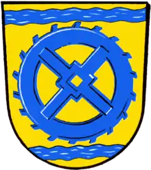 Герб Флотведеля - Виготовлена з китайського срібла тарілка з гербом Флотведеля (один з районів Целле) за будівництво дитячого садку Німецького Червоного Хреста в Айклінгені (15 грудня 1976)