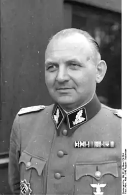 - У 1941 був начальником оперативного відділу Командного штабу рейхсфюрера СС, з 1941 воював на радянсько-німецькому фронті.