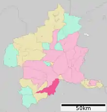 Розташоване в південній частині префектури. Виникло на основі постоялого та торговельного містечка на Середгірському шляху. Отримало статус міста 1 квітня 1954 року. Основою економіки є харчова промисловість, виготовлення електротоварів, комерція. Традиційне ремесло — виготовленням фудзіоцької черепиці. Станом на 1 жовтня 2007[1] площа міста становила 180,09 км². Станом на 1 серпня 2008[2] населення міста становило 68 450 осіб.