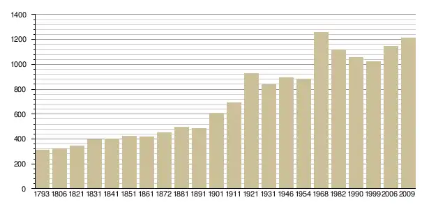 Динаміка населення (base Cassini de l'EHESS pour les nombres retenus jusque 1962[3], base Insee à partir de 1968 (population sans doubles comptes puis population municipale à partir de 2006)[4] · [5] ):