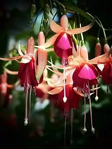 Фуксія (лат. Fúchsia) — рід багаторічних рослин родини онагрові (Onagraceae). Батьківщина фуксії — Центральна та Південна Америка, Нова Зеландія. Це вічнозелені чагарники, яких у природі налічується близько 100 видів. Типовим видом є Fuchsia triphylla L.[1].