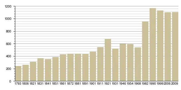 Динаміка населення (base Cassini de l'EHESS pour les nombres retenus jusque 1962[3], base Insee à partir de 1968 (population sans doubles comptes puis population municipale à partir de 2006)[4] · [5] ):