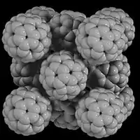 Фулерит має високий ступінь кристалічного порядку. Молекули C60 при кімнатній температурі конденсуються в структуру з щільною упаковкою, де кожна молекула має 12 найближчих сусідів. Існують дві щільноупаковані структури — гранецентрована кубічна (ГЦК) і гексагональна ґратка. У кристалічному фулериті молекули фулеренів утворюють ГЦК-ґратку. Оскільки 60-атомна молекула має діаметр 0,71 нм, розміри елементарної комірки ГЦК-ґратки вельми значні: кожна сторона кубу дорівнює 1,42 нм, а відстань між найближчими сусідами становить близько 1 нм. У кристалах, що складаються з атомів і мають ГЦК-ґратку, сторона кубу зазвичай не перевищує 0,4 нм, а відстань між найближчими сусідами — 0,3 нм.
