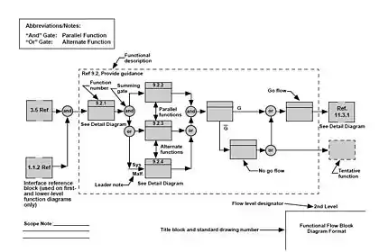 Сучасна блок-схема функціонального потоку була розроблена TRW Incorporated, що займається оборонним бізнесом, у 1950-х роках.[6] У 1960-х роках NASA використало його для візуалізації тимчасової послідовності подій у космічних системах і польотах.[4] FFBD стали широко використовуватися в класичній системній інженерії, щоб показати порядок виконання системних функцій.[2]