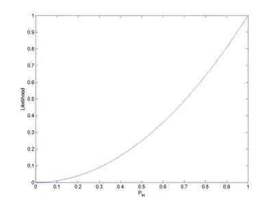 Це не те ж саме, що й сказати, що ймовірністю того, що , за заданого спостереження HH є 0.25. (Для цього ми можемо застосувати теорему Баєса, яка означає, що апостеріорна ймовірність є пропорційною до правдоподібності, помноженої на апріорну ймовірність.)