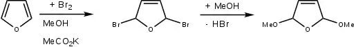 Також фуран може приєднувати і молекули які не є типовими дієнофілами, наприклад молекулу брому