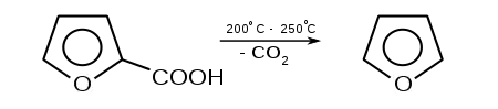 Також фуран отримують декарбоксилюванням 2-фуранкарбонової кислоти[5]: