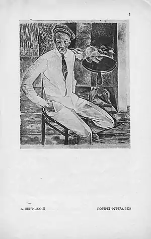 ![]() Анатоль Петрицький. Портрет Веніаміна Фурера (1928). Сторінка з «Нової генерації». | |