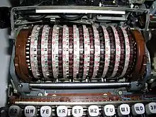 В центрі кожної машини фіалка 10 різних кодувальних коліс(роторів), позначених буквою кириличного алфавіту а саме: