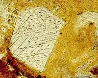 Кварц, що витримав ударний метаморфізм має два набори площинних деформаційних особливостей в ударному розплаві гірської породи. Ударна структура Сувасвесі на півдні, Фінляндія (тонкий зрізний мікромікрограф, плоско поляризоване світло).