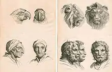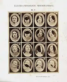 - мімічна, найголовніший принцип якої полягає в тому, що фізогномічними ознаками є тільки зафіксовані на обличчі вираження емоцій і почуттів людини (Петрус Кампер, його послідовник Чарльз Белл у своїй праці «Анатомія і фізіологія вирази», 1806; Г. Дюшен "Механізм людської фізіогноміі або електрофізіологічний аналіз вираження пристрастей ", середина XIX ст .; Ч. Дарвін " Про походження видів «, 1859; І. А. Сікорський» Загальна психологія з фізіогноміки ", 1861); І. М. Сєченов «Фізіологія нервової системи», 1866;
