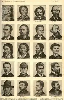 Широку популярність в 60-х рр. XIX ст. здобули праці психіатра, засновника біокриміналістики, професора Туринського університету Чезаре Ломброзо. У праці «Злочини, причини, засоби боротьби» (1899 р.) Ч. Ломброзо розроблена класифікація чинників злочинів, що включає фізичні, біопсихологічні і соціальні чинники з наукового підходу до фізіогноміки. Праці Дюшена і Дарвіна багато в чому сприяли створенню нової фізіогноміки, чому сприяли такі умови: "розвиток антропології ; успіхи психології і більш точна психологічна класифікація почуттів (внутрішні знаки); застосування до справи (з ініціативи французьких психіатрів) поетичних зображень душевних станів і, нарешті, застосування художніх творів для наукових та фізіогномічних цілей.[15]