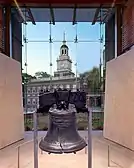 - Поруч із 2-поверховим із дзвіницею будинком «Залу незалежності» у спеціальному павільйоні перебуває Дзвін Свободи (Liberty Bell) — символ незалежності США, бій якого 8 липня 1776 року сигналізував про оголошення декларації про незалежність США, прийняту 4 липня 1776 року.
