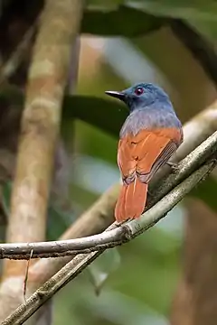 Філентома рудокрила[2] (Philentoma pyrhoptera) — вид горобцеподібних птахів родини вангових (Vangidae).