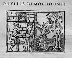 Демофонт заручився з Філлідою, але не повернувся до неї в призначений час. Філліда з розпачу повісилась і була перетворена на мигдалеве дерево, яке зацвіло, коли Демофонт обійняв його. За іншою версією, Філліда дев'ять разів ходила до моря зустрічати Демофонта і, не дочекавшись його, померла з горя. На могилі Філліди виросли дерева, які в місяць її смерті засихають і обсипаються.