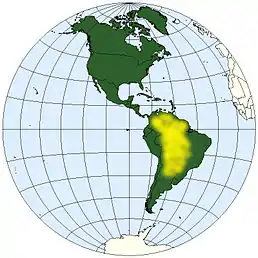 Мешкає у Колумбії, Венесуелі, Гаяні, Суринамі, Французькій Гвіані, Бразилії, Болівії, Парагваї, північній Аргентині.