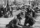 Рибалки, що змотують сітки Pêcheurs raccommodant les filets |
