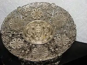 В Україні за радянських часів серійно філігранні вироби виготовлялися, зокрема, у експериментальному цеху Заводу столових виробів імені Т. Г. Шевченка (м. Вільнянськ, Запорізька область).