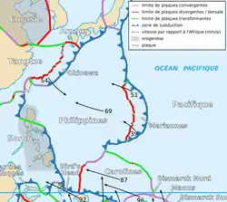 Субдукція плити Філіппінського моря під залишки Євразійської плити створила Тайвань й Філіппінський рухомий пояс і викликала вулканічну активність на східній стороні Філіппінського рухомого поясу. Ця субдукція і вулканічна діяльність триває й сьогодні.