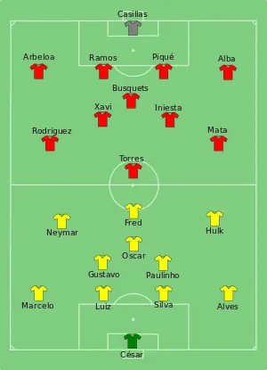 - Tactical Line-up – Final – Brazil-Spain (PDF). FIFA.com. Fédération Internationale de Football Association. 30 червня 2013. Архів оригіналу за 3 березня 2016. Процитовано 30 червня 2013. (англ.)