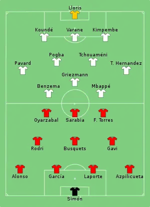 - Tactical Line-ups – Final – Spain v France [Стартові склади – фінал – Іспанія-Франція] (PDF). UEFA.com. Унія Європейських Футбольних Асоціацій. 10 жовтня 2021. Процитовано 10 жовтня 2021. (англ.)