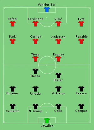 Незважаючи на видалення захисника «Манчестер Юнайтед» Неманья Видича на початку другого тайму, англійський клуб здобув перемогу в матчі з рахунком 1:0 завдяки голу Вейна Руні, забитому на 73-й хвилині.