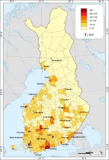 За даними дослідження, проведеного в 2013 році університетом Оулу та Центром навколишнього середовища Фінляндії, 70 % фінів проживає в містах або муніципалітетах, які їх оточують (це лише 5 % території країни).[18]