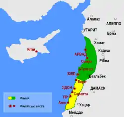 Головні міста Фінікії — Акко, Ахзів, Тір (сучасний Сур), Цараат (Сарепта), Сідон (сучасна Сайда), Бірут (сучасний Бейрут), Бібл (Губла, сучасний Джубейль), Триполі і Арвад.