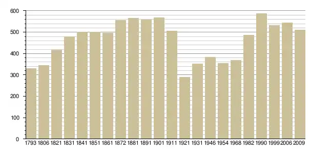 Динаміка населення (base Cassini de l'EHESS pour les nombres retenus jusque 1962[3], base Insee à partir de 1968 (population sans doubles comptes puis population municipale à partir de 2006)[4] · [5] ):