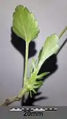 Однорічна або дворічна трава 10–40 см заввишки[2]. Стебла прямі, розгалужені, голі. Листки чергуються, коротко-черешкові. Листова пластина яйцювато-ланцетна, з закругленими зубчиками. Прилистки листяні, глибоко лопатчаті[4].