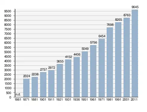Станом на 31 грудня 2014 року в муніципалітеті офіційно проживало 820 іноземців з 53 країн, серед них 502 громадяни країн Євросоюзу та 28 громадян України.[4]