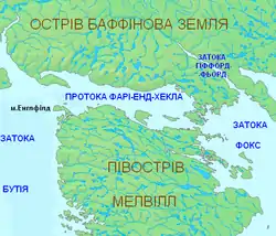 Протока роз'єднує острів Баффінова Земля на півночі та півострів Мелвілл на півдні.