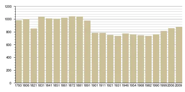 Динаміка населення (base Cassini de l'EHESS pour les nombres retenus jusque 1962[3], base Insee à partir de 1968 (population sans doubles comptes puis population municipale à partir de 2006)[4] · [5] ):