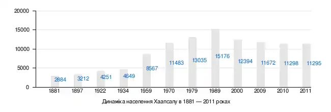 За даними перепису 2010 року, серед населення Хаапсалу 79,5 % естонців, 15,3 % росіян, 2,4 % українців, 0,8 % білорусів та 0,5 % фінів.