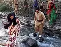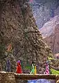 група хавраманських дівчат на дерев'яному мості через річку Сірван