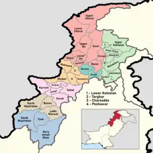 | Межує з: Федерально керовані племінні території, Пенджаб, Ісламабад, Азад Кашмір, Гілгіт-Балтистан, Бадахшан, Нуристан, Кунар | |||||