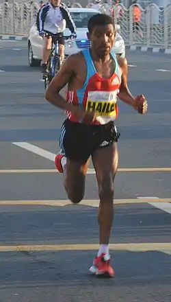 Хайле Гебрселассіє (амх. ኃይሌ ገብረ ሥላሴ, трансліт. haylē gebre silassē, англ. Haile Gebrselassie; 18 квітня 1973, Аселла, провінція Арсі, Ефіопія) — ефіопський стаєр і марафонець. Дворазовий олімпійський чемпіон та чотириразовий чемпіон світу з бігу на 10 000 метрів, чотириразовий чемпіон світу в закритих приміщеннях на дистанціях 1500 та 3000 метрів. Від 1994 року встановив 27 світових рекордів[3] на бігових дистанціях, починаючи з 2000 метрів і закінчуючи марафоном<[4]. Станом на 2016 рік володіє світовими рекордами в бігові на 20 000 метрів і годинному бігові[5].
