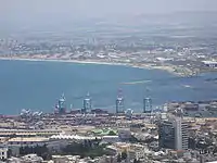 Західні схили Кармелю і зона торгівлі і зайнятості в центрі якого Матам, торговий центр Каньйон Хайфа, Вежа електричної компаній і центр конгресів..jpg.webp)