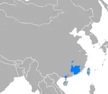 Регіон розповсюдження мови хакка в Китаї