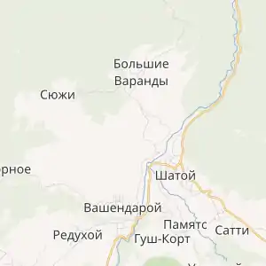 Найближчі населені пункти: на півночі — село Великі Варанди, на південному сході — село Шатой, на півдні — село Вашиндарой, на заході — село Сюжі[1].