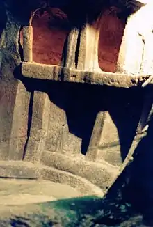 Другий рівень є пізнішим розширенням, при цьому скеля піднята на поверхню за допомогою циклопічного такелажу. [8] На цьому рівні є кілька кімнат: